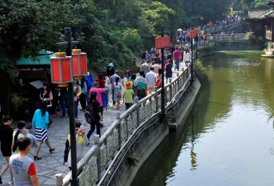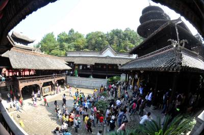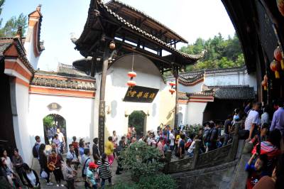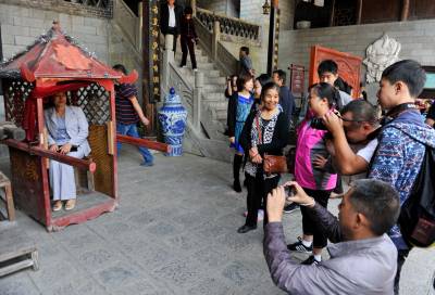 游人在湖北恩施土司城游玩,体验土家文化之旅。(10月5日)