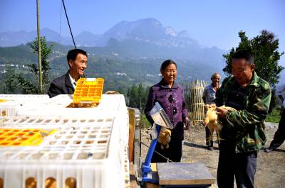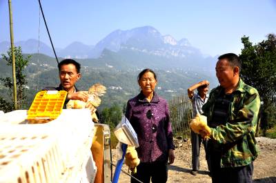 留守老人“家门口”选小鸡 10月8日,在恩施市红土乡稻池村绵羊口组,留守老人家门口围着一辆小货车选购小鸡。 近年来,该乡交通四通八达,有经济头脑的20多位农民瞄准商机,购置小三轮或四轮小货车,带上电子秤,当起送货上门的新型“货郎”。留守老人需要什么,他们就带上什么,而且价格不比集市的高,不仅自己获利,也方便了群众,很受欢迎。(视界网彭绍峰摄)