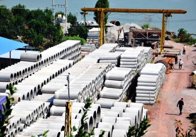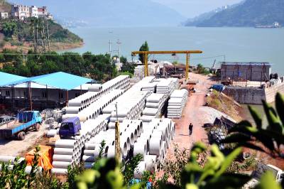 10日,几名工人在一堆堆摆放整齐的水泥涵管旁忙活。 两年前,秭归县秦华、秦小琴两兄弟来到巴东县投资创业,在官渡口镇五里堆社区注册了“五星”水泥制品有限公司,主要加工生产钢筋混凝土排水管、艺术围栏和护栏,有效的支持了巴东城乡建设提档升级。(视界网 梁勇 摄)13986846069