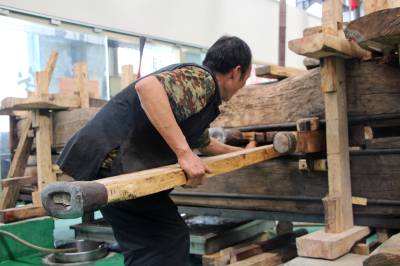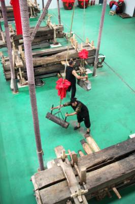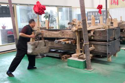 手工榨油采用的是压榨法,是一项由多人配合完成的繁重体力活儿,因投入成本高,出油率较低,逐渐被机械加工替代,手工榨油技艺将渐渐远离人们的视线。但湖北省十堰市郧县谭家湾镇老郧阳木榨坊却反其道而行之,日前专门从外省高价购回数套木榨设备,并聘请木榨师傅现场教授手工榨油方法。据悉,一方面是为了让手工榨油技艺得以传承和发扬,另一方面是为了满足广大消费者对购买手工油料的需求。