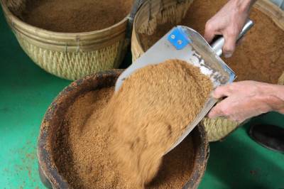 手工榨油程序比较复杂,基本流程是:首先将芝麻籽炒熟,待冷却后用粉碎机将炒熟的芝麻籽粉碎成粉状;然后将芝麻粉放入木甑蒸熟,出甑后,将原料倒入用龙须草垫底的圆形铁箍中,制成榨油用的芝麻饼;最后将成块芝麻饼整齐地竖放进木榨的榨槽内,用木枋挤紧,加入楔子后,用悬挂撞锤猛击楔子,芝麻饼在重力挤压下,就会从榨槽的槽眼流出芝麻油。手工榨油虽然日加工量不足现代机械加工量的五分之一,但是其生产的芝麻油原汁原味、营养丰富,而深受消费者青睐。