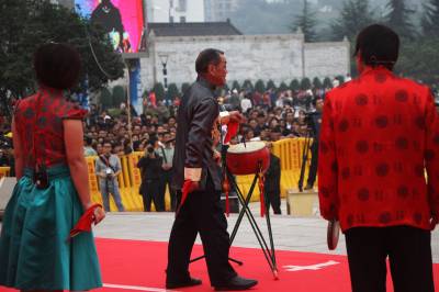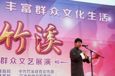 10月11日,演员在舞台上表演节目。“看舞蹈、听相声、品戏曲、悟家风,节目好看,韵味十足,家风感人,值得弘扬……”观众在丹桂飘香中边看节目后感慨到。10月11日上午9时,十堰市宣传文化部门与竹溪县宣传文化部门联袂举办的“人民广场大家乐”——“相约竹溪”群众文艺展演、首届十堰市“民间艺术大师”暨竹溪首届“最美家庭”颁奖活动在公园广场隆重举行,吸引了近万名群众到现场观赏文艺名家的精彩表演,聆听“最美家庭”的动人故事,享受丰富多彩的视听盛宴。
