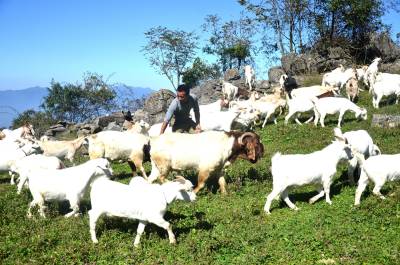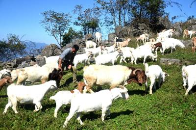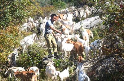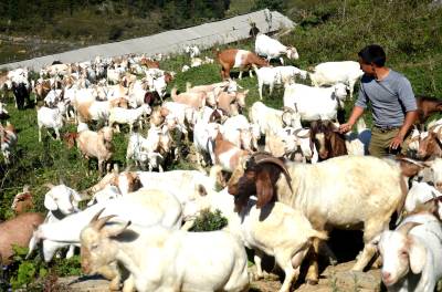 据了解,师长奎大学毕业后在城里找到一份稳定工作。家住海拔1600米的庄屋顶村,山林面积大且平坦,牧草资源丰富,县政府出台一系列优惠政策,鼓励全民创业,这些自然优势、外部环境,促使他选择返乡当“羊倌”。2011年初,他与弟弟徐宗山合伙引进60多只波尔羊种羊与本地山羊杂交繁殖,效果很好,养殖规模逐步扩大,今年已出栏山羊80多只,现存栏山羊400多只,黄牛20多头,预计全年总收入可突破30万元。巴东县官渡口镇政府 向传辉摄 电话 18963928551
