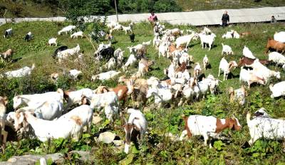 10月11日,巴东县官渡口镇庄屋顶村5组师长奎正赶着羊儿上山放牧。