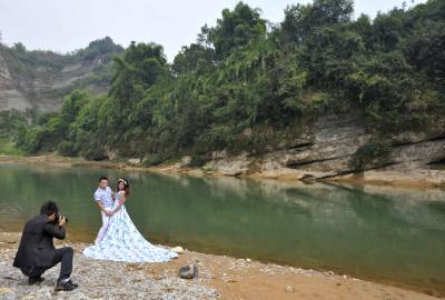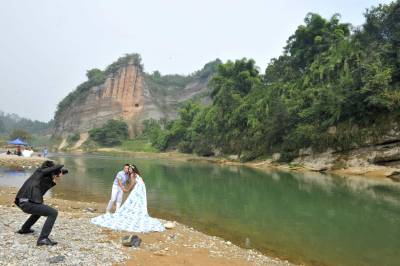 周末城郊亲水游 10月12日,游人在湖北省恩施土家族苗族自治州城郊的大沙坝拍婚纱照、游玩。 深秋里,湖北恩施的部分居民选择和家人一起,走进城郊大自然,与绿水亲密接触,野炊、拍照、玩沙子等,享受秋日的暖暖阳光,感受无限惬意。 视界网 谢顺 摄