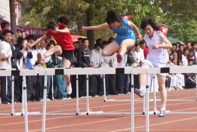 跨越4月27日,随州市首届教职工运动会暨第三届中学生运动会在随州二中开幕。据悉,为了丰富我市教职工生活,活跃校园文化,加强学校之间的交流与合作,市教育局联合文体局、总工会、团市委和教育工会举办本届运动会。本届运动会分教职工类和中学生类,教职工类比赛设男子篮球、乒乓球、中国象棋3个项目,中学生类比赛设田径、乒乓球两个项目,全市800多名教职工和学生参加。图为运动会上女子跨栏镜头。(本报视界网杨文明摄)