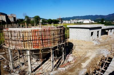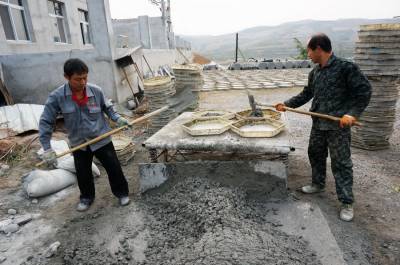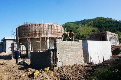 10月13日,建筑工人正在加快郧县南化塘镇污水处理厂建设。为保障一库清水北送,郧县投资数亿元资金加快汉江两岸各乡镇污水处理厂建设,目前己有多家乡镇污水处理厂投入运行,或在调试和建设之中。 视界网周家山 摄