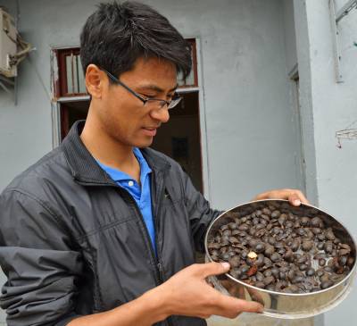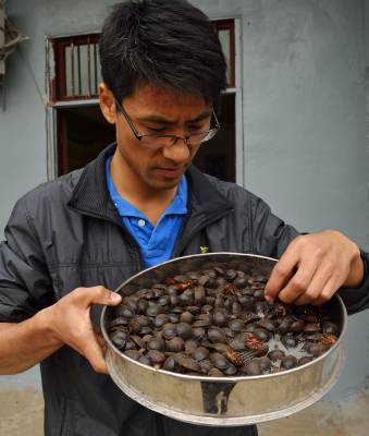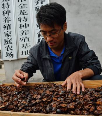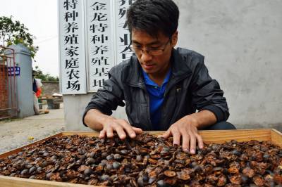 小土元大市场 10月13日,宜都市枝城镇官坪村九组杨瑞在晒土元。今年,杨瑞已出售成品土元400公斤,收入3.8万元,预计全年可出售成品土元1000公斤,创收9.6万元。杨瑞2007年开始养殖土元,并成立特种养殖合作社,如今已有社员20多户,他们共同闯市场,在特种养殖领域一展身手。