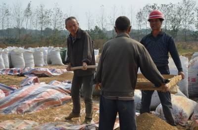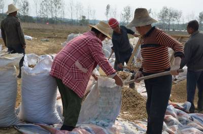 安陆市孛畈镇同兴生态农业园利用生猪粪便进行厌氧发酵产生有机肥料种植农作物,图为10月13日,该种植基地的花生喜获丰收,当地老百姓到农业园打工,帮忙筛花生、装花生。(通讯员 黄德望 张国安摄) 通联地址:安陆市委宣传部新闻科 联系电话:15072590110