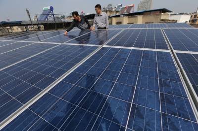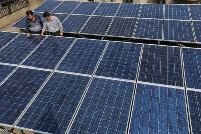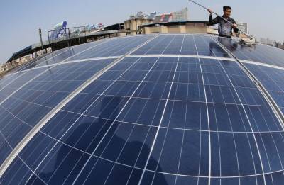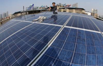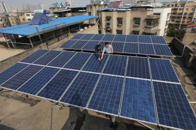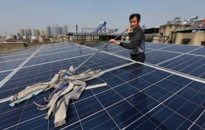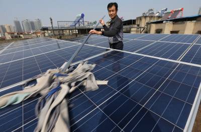 10月14日上午,襄阳市民田永生在自家屋顶擦去太阳能板上的灰尘。10日上午10点55分,湖北省樊城区茂盛社区居民田永生在自家组装的光伏太阳能发电系统,成功并入建新路1#公变台区,实现襄阳市城区首例家庭光伏发电。尽管襄阳市的近几日光照备件不佳,截止到 10月14日11时,田永生的光伏自发电76度。