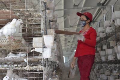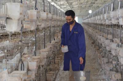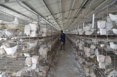 位于安陆市李店镇的“孝感市农业产业化重点龙头企业”——湖北富山生态农业开发有限公司生态养殖肉鸽、山鸡、野兔、黄鳝、泥鳅等“绿色产品”,市场销路好,“钱”景诱人。图为10月14日,该公司“美国王鸽”养殖场管理人员正清理鸽笼。据介绍,该公司拥有种鸽10万羽,年产肉鸽150万羽,销售额达2300万元以上。(视界网 黄德望摄) 通联地址:安陆市委宣传部新闻科 联系电话:15072590110
