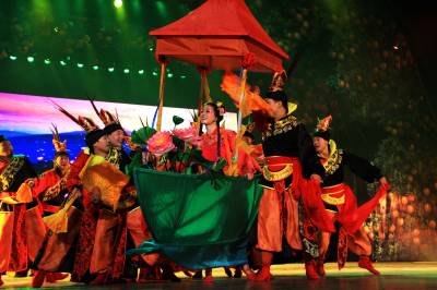 10月15日晚,大型原创民俗歌舞《大端午》正在宜昌市城区五一剧场隆重上演。