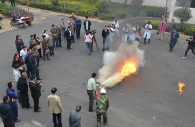 10月16日,安陆市民政局组织全市养老机构负责人进行消防安全培训,促进社会养老机构安全管理上档升级。图为培训当日,安陆消防大队官兵在市光荣院进行消防演练,现场指导灭火、自救的方法。(视界网黄德望 摄) 通联地址:安陆市委宣传部新闻科 联系电话:15072590110