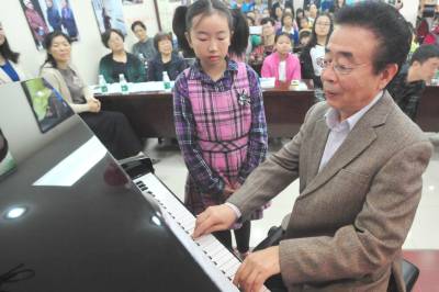 18日上午,我国著名钢琴家石叔诚来到宜昌市伍家岗区力行街社区,指导该社区的钢琴爱好者们学习钢琴。在第四届中国宜昌长江钢琴音乐节暨首届宜昌艺术节期间,诸多钢琴名家将走进社区,向辖区居民指导授课,普及钢琴文化。