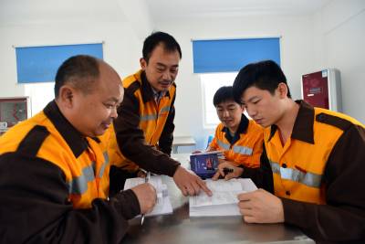 第十一版《铁路技术管理规程》将于2014年11月1日正式实施,为使干部职工在专业管理和岗位作业过程中熟练掌握和运用新版《技规》,荆门桥工段结合管内实际,组织职工对新修订的《技规》进行系统学习,使职工能尽快掌握新《技规》,提高业务素质,以满足运输生产安全需要。图为近日,这个段恩施线路车间职工在学习新《技规》。(彭琦 摄)