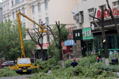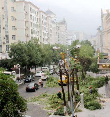 巴东:为城市行道树“整容” 10月16日,工人们正在巴东县信陵镇县城楚天路为城市行道绿化树进行截冠整形。 据了解,巴东县城属于三峡工程移民搬迁新建城市。县城几个小区的行道树自1999年栽植以来,部分行道树木生长过高、树冠过大,冠内大量枯枝形成安全隐患。为了让城市更安全更靓丽,使行道树达到城市园林绿化整体景观效果,该县首次出动高架车、小型吊车、高枝油锯等园林绿化机械,大规模地对城市行道树进行截冠整形。(本报视界网 赵玉祥摄影 联系电话:18963928635)