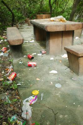 游客出游应有环保意识 4月27日,在某风景景区内,随地看到游客吃完丢弃在现场的物品垃圾物,现场一片浪迹。当日,笔者在某著名景区内供客休息的石桌边,看到满地都是被游客随意丢弃的物品袋、易拉罐等垃圾物。游客外出游玩应该有环保意识,讲究环境卫生和公共道德。(作者:十堰市东风汽车悬架弹簧有限公司叶桓摄影报道)