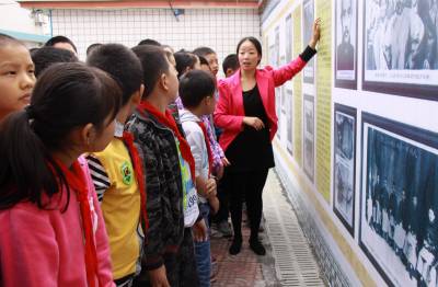 10月17日,竹山县宝丰镇施洋小学师生正在观看学习校园文化墙上的劳工大律师施洋烈士的事迹。该校是一所以施洋烈士命名的市级革命传统教育示范学校,学校将“施洋精神代代传”确定为“一校一品”校园文化,利用施洋烈士纪念馆这一红色旅游基地,组织广大师生开展了施洋大律师铜像前宣誓、参观施洋纪念馆、讲施洋烈士故事等活动。弘扬烈士精神,传承中华美德,培育民族精神,践行社会主义核心价值观。