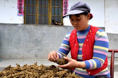10月16日,恩施市新塘乡太山庙社区黄连种植大户万方银家的场坝里,工人们正在忙碌着加工黄连。