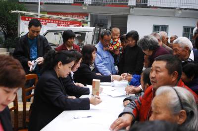 10月19日,十堰市农商银行北京路支行员工在张湾区汉江街办桐树沟村开展便民服务。