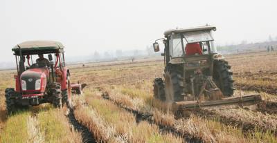 10月20日,湖北省武穴市石佛寺镇千亩冯秀畈,数台旋耕机一面翻整稻茬田,农民一面撒播油菜,好一派秋播场景! 全省油菜生产示范市--武穴市,为了解决45万母油菜种植面积“一亩不能少”和劳力不足的矛盾,充分发挥全市24家农机专业合作社和200多家农机大户的近千台(套)在秋收秋种骨干作用,取得明显效果,据统计,今年武穴市油菜生产机械化率将达到70%左右。本报视界网冯怡红摄