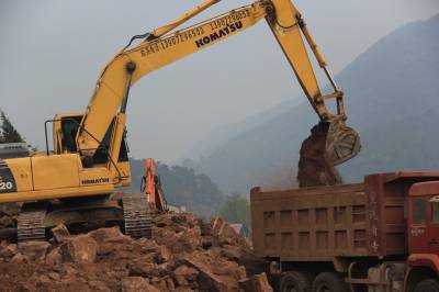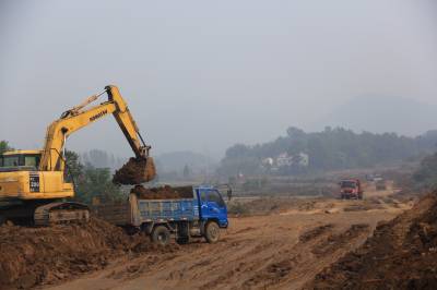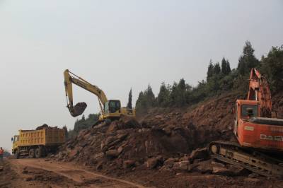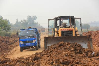 10月19日,大型机械正在安陆市钱冲古银杏国家森林公园东线道路紧张施工。由于钱冲天然、奇特、成片的古银杏群落和红色的新五师革命遗址,因而每年深秋时节前来赏叶、摄影、观光的游客络绎不绝,以至于造成交通受阻的情形。为打造畅达的景区交通,该市拟投资3000万元,在原毛河街道东新修一条长6.5公里,宽6.5米的水泥线路,目前路基基本完成,所有工程正在紧张有序进行之中。 (本报视界网:王代金,,摄影 电话:13986495112)