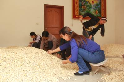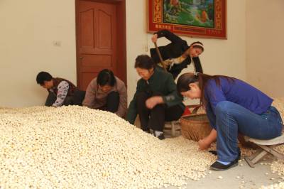 10月19日,几位农民正在安陆市钱冲专业合作社内挑选银杏果。据合作社总经理王端义介绍,他的合作社每年收购银杏、板栗、油茶、香菇、木耳等当地特产30余万斤,既为农民增收上百万元,也为自己创收20余万元,从而充分发挥了“公司+农户”的带动引领作用。 (本报视界网:王代金 摄影,电话:13986495112)