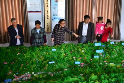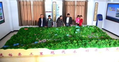 10月21日,建始县三里乡河水坪村支书颜家艳在规划展览厅沙盘前给村民介绍未来现代水利示范区建成情况。该乡在打造生态统筹示范区建设中,走现代水利引领之路,计划投资5亿元,采取民生、生态和景观工程相结合方式,着力兴建现代防汛抗旱工程、现代农村水利工程、现代水生态保护工程、节水示范建设工程、水情水文化宣传教育等工程。目前三里灌区主渠道,贯穿全境的东龙河流域进行综合治理有序推进,初步形成山水、林水、田水、路水和房水相间建设目标,一个“山青、水秀、景美、人和”生态“梦里水乡”正展现在面前。本报视界网刘波摄
