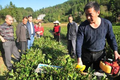 > 党员服务队进田间助农念茶经