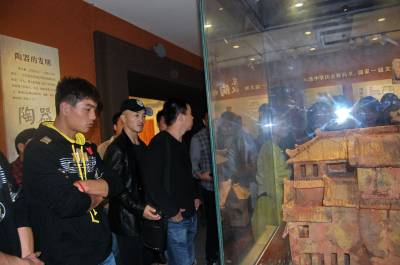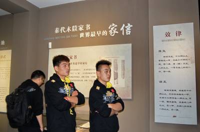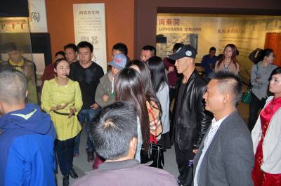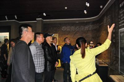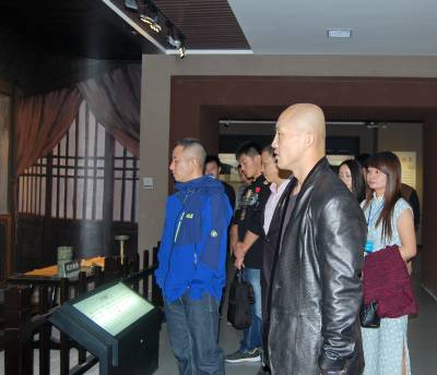 2014年10月21日,云梦祥山博物馆迎来从河南远道而来的武林客人。当日,参加2014《武林风》WLF环球拳王争霸赛•孝感站比赛新闻发布会后,河南卫视《武林风》栏目著名主持人郭晨东先生及武僧一龙、死神方便等武林高手来到云梦祥山博物馆,观看震惊世界的秦代竹简,最早的木牍家信、六博棋,被誉为“华夏第一楼”的东汉陶楼,精美绝伦的战国磨光彩陶、秦汉漆木器,稀世珍宝斗兽纹铜镜、关内侯金印等珍贵文物。 本报视界网 陈保忠 摄