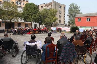 为了进一步弘扬中华民族敬老爱老助老的传统美德,22日,由公安县老干部局、民政局和老干部民乐团组织送戏曲到福利院,为老人们带来了欢乐,使老人们感受到社会大家庭的温暖。图为民乐团表演戏曲的情节。