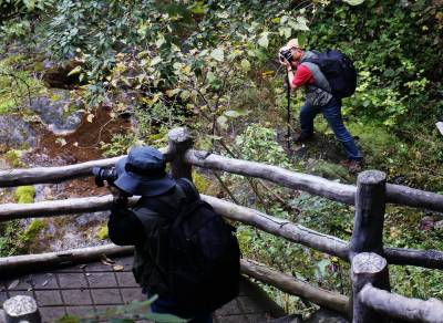 10月22日,首都北京的4名重量级摄影家在郧县九龙瀑风景区采风创作,他们回北京后将水源区创作的风光作品呈现给北京市民,以推动北京市市民来水源区观光旅游,实现"饮水当思源 感恩进库区",助推调水源头水源区旅游业发展。 视界网周家山 摄