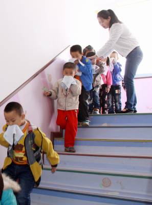 10月23日,竹山县宝丰镇施洋小学附属幼儿园师生正在进行应急疏散演练。为了让广大师生掌握更多的地震、火灾等逃生知识,日前,该镇各学校落实好安全教育课程,让应急疏散演练常态化开展。同时,还发放了《中小学幼儿园应急疏散演练指南》、《青少年防震避震知识手册》等宣传资料,利用安全教育周、安全教育日等契机,积极组织开展演练活动,有效增加师生安全、迅速逃生的应变能力。