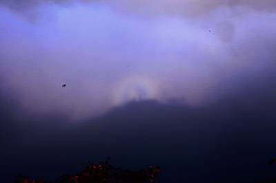 2014年10月中下旬之交,长江三峡地带连续降雨,秋雨绵绵,是月22日初晴,摄影爱好者们相邀,于凌晨4时半驱车赴长江巫峡拍巫峡拍雨后雾景,当时至9时左右,摄影者们惊喜发现巫峡雾气中显现出一道佛光,持续达一分多钟。((视界网 李长凯[晨星] 摄)13517189948)