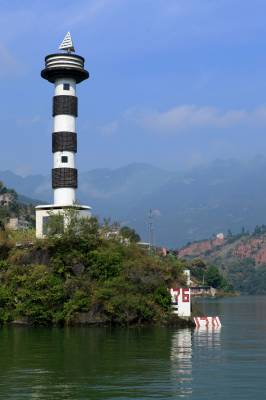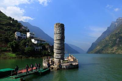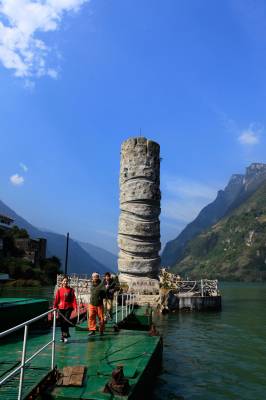 10月24日拍摄的长江三峡库区巴东县火焰石水位标尺。