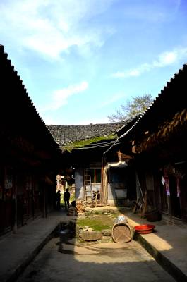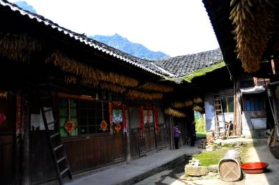 在这些古村落的建筑群后面,是耸立入云宵的山峰。我们随口问起那些山,老人们争先恐后地介绍起来“那座山名叫宝塔山,那边叫二等岩,那座山叫高峰尖……”当问起这些山名的源由和谁命名的,他们说“这些都是我们自己起名的,你看嘛,那座山像不像座宝塔?那座山又高又尖,我们就叫它高峰尖”。 我们站在四合院内,望着这些鳞次栉比的吊脚楼,天井敞亮,阳光沿着屋檐折射下来,润泽着院内的一切。这些皱纹深深的老人,豁着没了门牙的嘴,在四合院天井里,把自己晒成了童年。