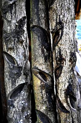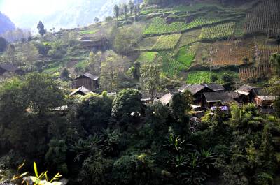 全村现有吊脚楼200多栋,以马弓坝最为集中。马弓坝,因地形呈一张满弦待发的弓而得名。一棵三尖杉古树,已经有好几百年的历史,立在马弓坝的山头上,一圈圈的树痕显示着年轮的沧桑,也见证着马弓坝变迁的岁月。“过去还有人逢年过节给这棵树烧香祭拜,现在没人信这些了。”陪同的天落水村主任董启忠说起这棵古树,滔滔不绝。