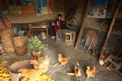 叶志山的家在窑沟村的一个半山腰上,面临堵河。家是2间半的简陋平房,一间为卧室,房间里只有一张简单的床,另一间为堂屋,屋角有一个鸡笼,养了10多只鸡子,屋中间堆满了今年收获的玉米,另有半间作为厨房。