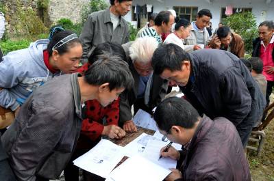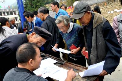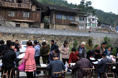 10月15日,恩施市新塘乡财政所正在横栏溪村小学操场上开展惠农补贴信息采集流动办公活动。