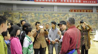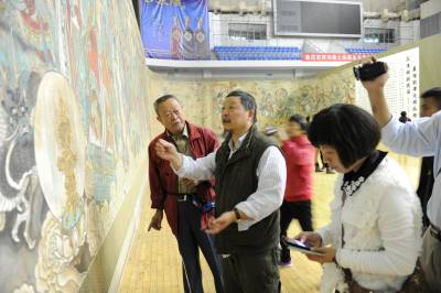 10月27日,市民在襄阳体育馆观看“刘庸之临摹永乐宫壁画展”。这是襄阳市画家刘庸之耗时17年以1:1的比例临摹的永乐宫壁画的首次面世。