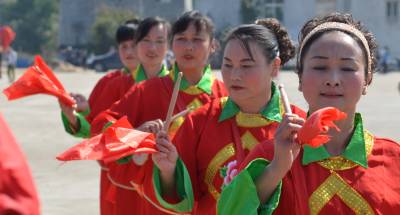10月24日,在湖北省大悟县四姑镇北山红叶观光园内,当地群众载歌载舞为第三届大别山(大悟)红叶文化旅游节助兴。