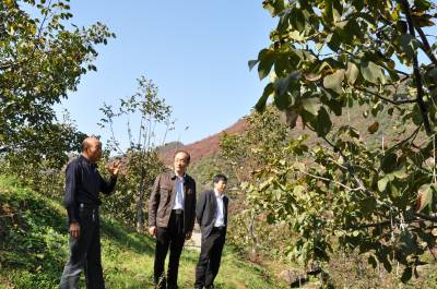 “山大王”带富众乡亲 退休不退志,郧县谭家湾镇李兴胜退休后承包荒山2000余亩种植核桃。8时间,探索出了独家核桃生产管理办法,浆满果多味香,年纯收入300多万元。致富后的李兴胜,办培训班,无偿传授核桃种植技术,提供优质果苗,带领乡亲们共同种核桃。成立了郧县圣源核桃专业合作社,合作社成员核桃发展到了21000亩,290多个家庭因此走上了致富道路。图(左一)为李兴胜正在为前来“取经”的人介绍经验。