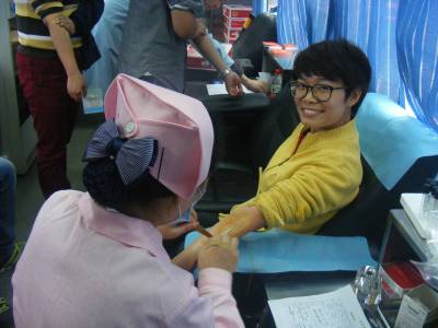 老师们在血站工作人员的指导下,进行填表、体检、化验,然后排队进行无偿献血。参与无偿献血的教师中有年轻老师,也有共产党员,其中有不少老师此前都有献血经历,他们用自己的实际行动传递了社会正能量。