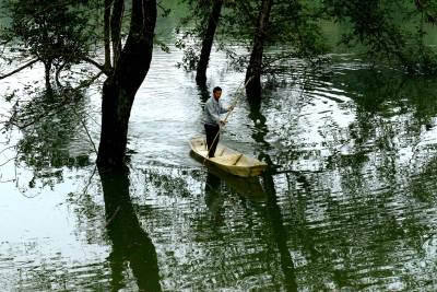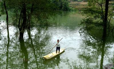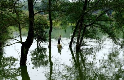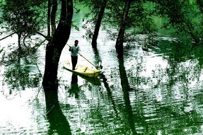 林中行船别样景 11月1日,来凤县革勒车镇新峡河库区,村民驾起小舢板在林中窜行。因近日连续强降雨,新峡河库区水位猛涨,村民靠小舢板出行,水中林荫道成了库区独特风景。 本报视界网姚丙然 来凤县革勒车镇文化服务中心 电话:13997799385