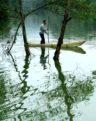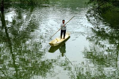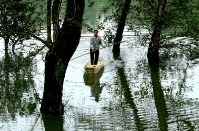 > 林中行船别样景