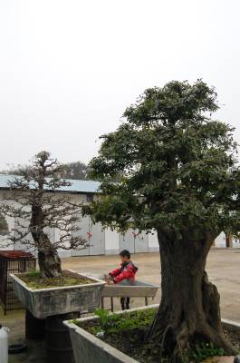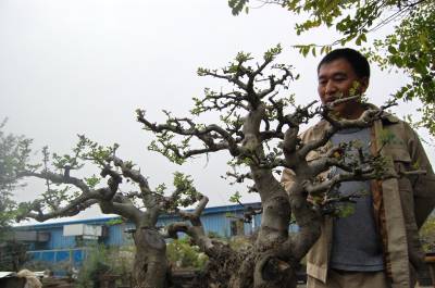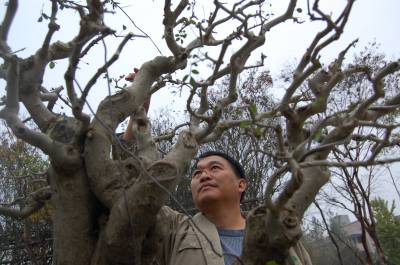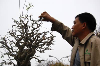 2014年11月1日,云梦天成实业公司园艺师忙着修剪对接白腊等盆景。