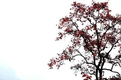 农历九月,序属三秋。潦水尽而寒潭清,烟光凝而暮山紫。层峦耸翠,上出重霄。 2014年10月31日,湖北省秭归县屈原镇九岭头林场封山育林区,红叶染尽,诗意盎然
