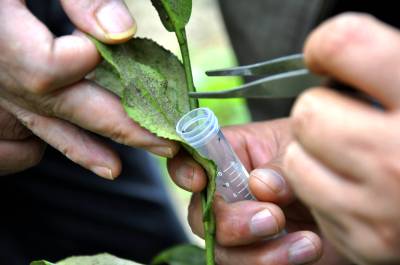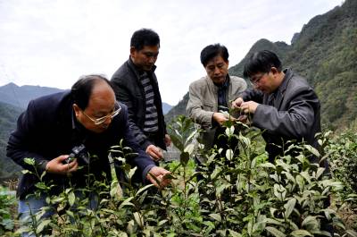 现场“问诊” 解惑答疑 11月3日,在恩施市红土乡天落水村,专家正在采集茶树虫害标本。 10月份以来,该乡天落水村沿马尾沟河边茶叶产区,遭遇了大面积茶网蝽虫害袭击。专家建议,茶园要及时进行深修剪,剪去受虫害的茶叶枯枝,并且把剪掉的茶叶枯枝及时进行清除,到冬季再喷洒石硫合剂封园,这样就可以杀死越冬的虫卵,从而预防来年病虫害的再发生。同时,开展相应的技术培训,逐步增强广大茶农的茶树病虫害“预测、预报、预防”意识,提高茶树病虫害防治技能。(视界网彭绍峰谭风华摄)