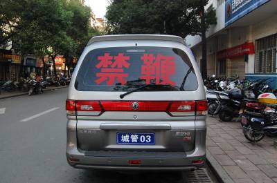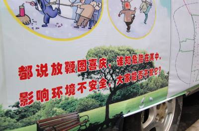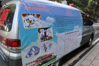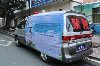 2014年11月4日,云梦县街头宣传禁鞭的宣传车。