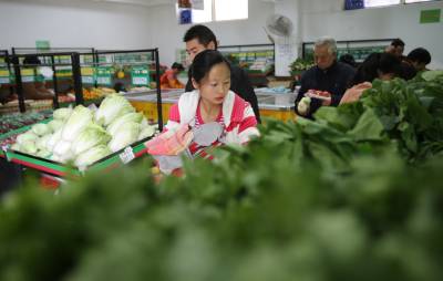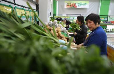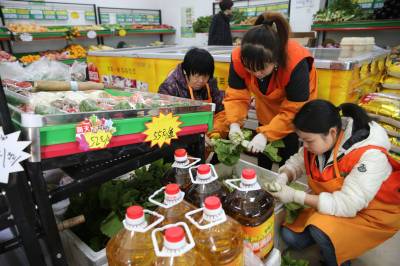 11月4日,襄阳市樊城区施营社区居民在社区内的鑫顺天平价商店买菜。
